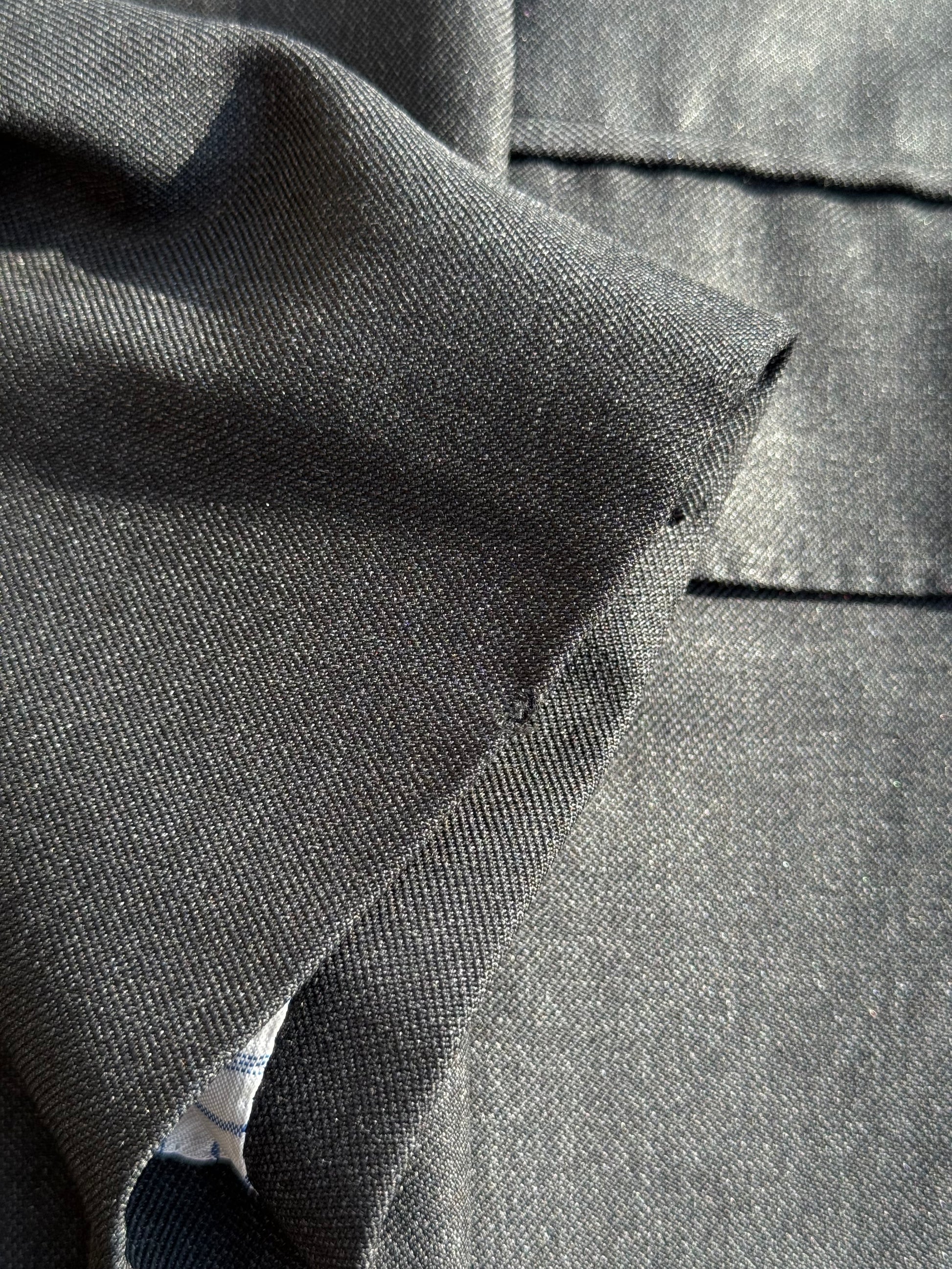 Gieves & Hawkes Bespoke Grey Suit 42R / W38” Savile Row 3 Button Please see photos - there are some small areas of minor wear. Photos clearly show these areas. There is a small moth nibble on the inner seam of one of the legs, around half way down the leg. A beautiful bespoke suit crafted in 2003 Charcoal grey Full canvas Working cuffs Buttons in waistband for braces Zip fly READ ALL MEASUREMENTS BEFORE PURCHASING Pit to pit 22” Shoulder to Shoulder 18.75” Shoulder to cuff 25.25” Collar seam to hem 31.5” Waistband Across 19” Inseam 31.5” with 2.5” spare Hem opening 8” Front rise 12.5” Full length 43 |