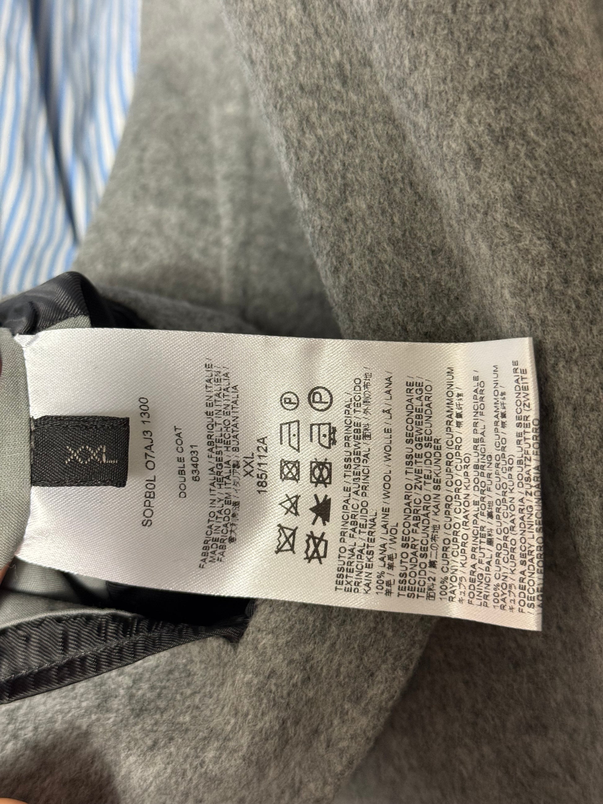 Men’s Brioni Grey Overcoat XXL Flannel Wool Unlined