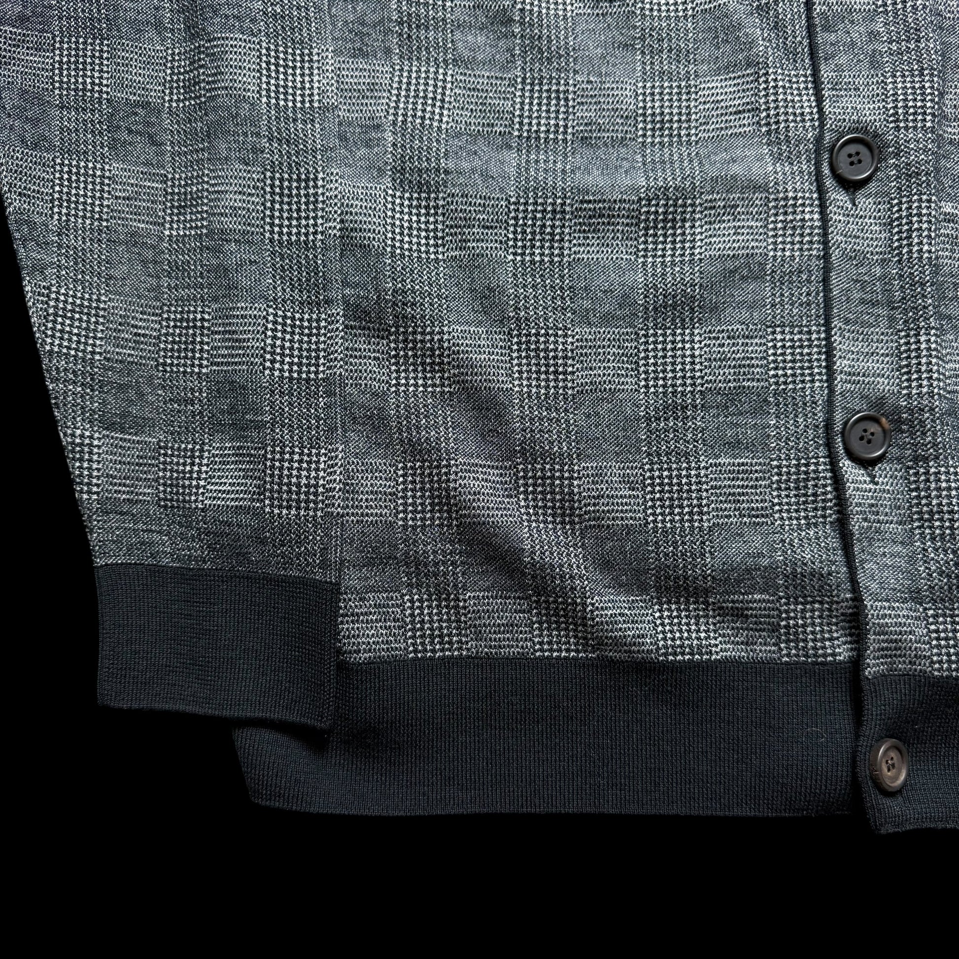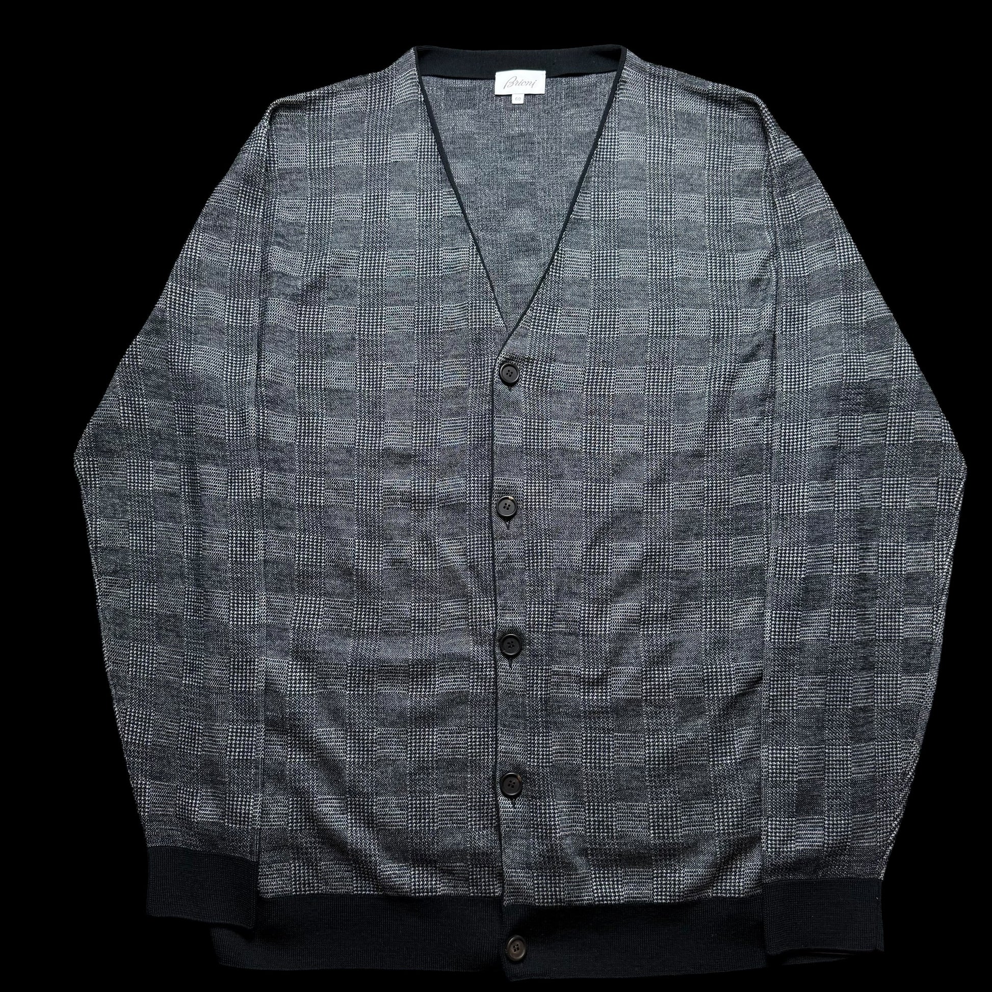 Men’s Brioni Wool & Silk Cardigan Size 60 Grey Pockets Prince Of Wales Check