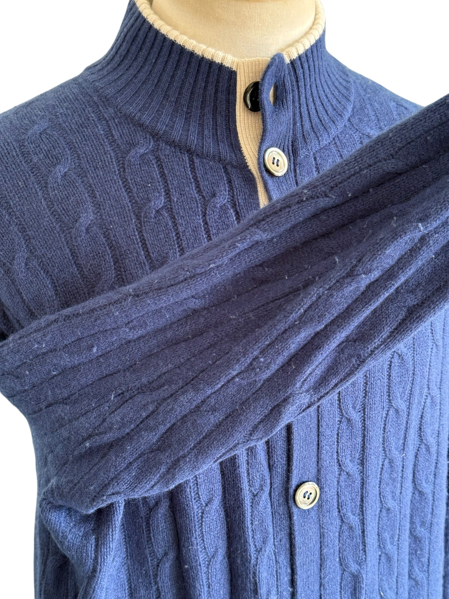 Men’s N. Peal Cashmere Cardigan Navy Blue Cable Knit Size Large AW19