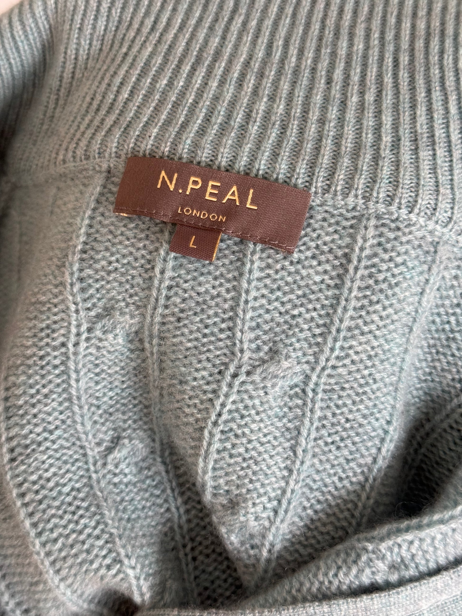Men’s N. Peal Cable Knit 1/4 Zip Cashmere Jumper Size Large Turquoise RRP £395